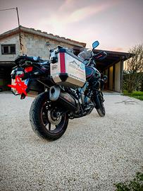 Suzuki V Strom 1000 del 08/2014, secondo propietario, 62.900 km. Tenuta maniacalmente, perfettamente funzionante, sempre tagliandata. Gomme semi nuove Pirelli Scorpion Trail 3, trasmissione sostituita per precauzione a 45.000 km, candele sostituite a 55.000 km. Optional: coppia valigie GIVI Trekker, bauletto GIVI, faretti di profondità, fari a led, cavalletto centrale, telaio paraurti e salvamotore. Sospensioni revisionate dal mago GioTek nel 2023, molla posteriore nuova e mono con camera d'aria. Prezzo trattabile, solo se veramente interessati.