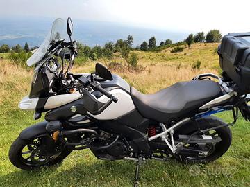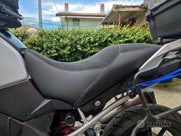 V Strom 1000 con i seguenti accessori: Piastra bauletto posteriore Piastre bauli laterali Faretti profondità Cavalletto centrale Sella in Memory Paramotore Cupolino air flow regolabile Inoltre Sempre tagliandata Suzuki