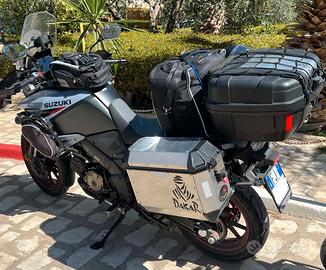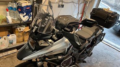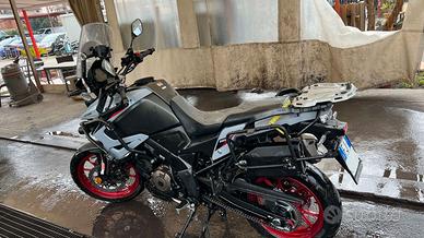 Vendo V_Strom 1050 SE come da titolo Immatricolazione 02/2024 Km 26000 tagliandata da officina autorizzata ancora in garanzia fino a 02/27. La moto è completa nella seguente dotazione Full optional: -Display TFT a colori da 5'' con informazioni di guida, ABS a due modalità,-Controllo trazione a 3 livelli più modalità Gravel (consente slittamento controllato), -Modalità di guida multiple (mappe motore A,B,C), -Cruise control, -Hill Hold Control (assistenza partenza in salita), -Quick-shifter bidirezionale up/down, -Parabrezza regolabile, -Barre paramotore di serie,-faretti a led supplementari, -Cavalletto centrale,-Piastra maggiorata cavalletto laterale,-2 Presa USB e 12 V, -Sistema frenante combinato con Motion Track Brake System e Load Dependent Control System, -Indicatori LED, -Faro LED, -Bauletto posteriore Givi da 52lt, -Valigie laterali con telaio Kappa, -Estensori specchietti retrovisori, Porta cellulare con ammortizzatore, -Box porta attrezzi laterale,Borsette laterali, -Gomme al 90% La Moto è sempre stata custodita in garage le condizioni sono da vetrina, Bollo Pagato fino a Feb 27, non ha bisogno di nulla. Vendo per realizzo altro mezzo di cilindrata superiore, Valuto permuta con Bmw R 1200/1250 GS ADV con differenza a favore. Prezzo POCO TRATTABILE, evitate di fare proposte assurde è un ottimo usato. NO AFFARISTI NE PERDITEMPO!!!!! Qualsiasi domanda rispondo per E-mail, contattatemi solo se veramente interessati.