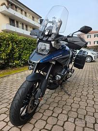 Splendida Suzuki V-Strom 1050 SE blu Varsavia 2023, 16675 Km moto da vetrina sempre tagliandata Suzuki documentabile tenuta in box scadenza garanzia Suzuki 04/2026 terminale di scarico Arrow in alluminio telai monokey valige Kappa garda 33lt. bauletto Kappa garda monokey 52lt. barre paramotore anteriori faretti fendinebbia LED Kappa consegno scarico originale. Cross-over dalla concretezza impressionante nonostante si lasci condurre quasi come una naked su asfalto non mette mai in difficoltà motore con tanta coppia disponibile da subito ma mai brusca nella erogazione vendo perchè ho già altre moto