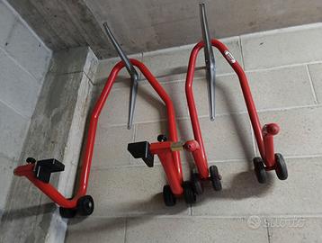 Compresi nel prezzo i due cavalletti alzamoto anteriore e posteriore e pedana per cavalletto centrale con ruote piroettanti per facilitare le manovre in garage
