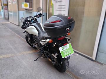 Monta un motore bicilindrico a V da 645 cc (circa 69 CV), ottima protezione aerodinamica, serbatoio da 20 litri e ABS di serie.