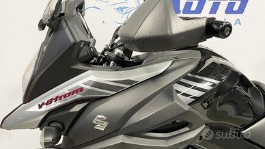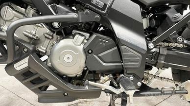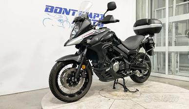 Motore: bicilindrico a V di 90° da circa 645 cc, raffreddato a liquido, 4 valvole per cilindro, distribuzione DOHC, alimentazione a iniezione elettronica. Potenza: circa 71 CV a ~8.000 giri/min. Coppia: circa 62 Nm a ~6.500 giri/min. Trasmissione: cambio meccanico a 6 marce, trasmissione finale a catena. Telaio e ciclistica: telaio a doppia trave in alluminio; forcella anteriore Ø circa 43 mm, escursione circa 150 mm; sospensione posteriore monoammortizzatore con leveraggio, escursione circa 160 mm; ruota anteriore da 19'' con pneumatico 110/80-19, ruota posteriore da 17'' con pneumatico 150/70-17; freno anteriore a doppio disco Ø 310 mm, freno posteriore a disco Ø 260 mm, dotata di ABS di serie. Altezza sella: circa 830 mm. Peso in ordine di marcia: circa 216 kg. Serbatoio: capacità circa 20 litri. Stile: adventure-touring con posizione di guida eretta, carenatura protettiva, ruota anteriore ampia (19'') per aumentare la stabilità e consentire un uso misto strada/leggero sterrato. Carattere: pensata per chi cerca versatilità, comfort e affidabilità su ogni tipo di percorso; motore fluido e ben gestibile, ciclistica stabile e adatta anche al passeggero; meno indicata per guida sportiva estrema o off-road tecnico intenso.La motocicletta viene consegnata con TAGLIANDO e REVISIONE in ordine, GARANZIA DI 12 MESI con DICHIARAZIONE DI CONFORMITA' a norma di legge.