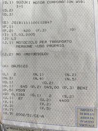 Vendo causo inutilizzo Suzuki V Strom 650DL. Compreso bauletto marca Givi e barre para motore. Moto dotata di cavalletto centrale. Revisione valida fino a Maggio 2026. Voltura a carico di chi acquista Prezzo trattabile.
