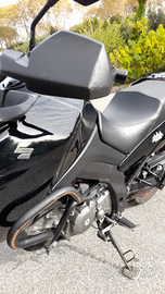 Specchietti e cupolino regolabile aftermarket, bauletto + valigie laterali originali Suzuki.