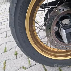 Moto in ottime condizioni senza un graffio, uniproprietario, sempre tenuta con cura e rimessa in garage. - ACCESSORI: Bauletti originali Suzuki, borsa da serbatoio (marsupio) originale, cavalletto centrale, paramani, cupolino originale Suzuki con spoiler, piastra GIVI per bauletto, barre paramotore. - MANUTENZIONE: Tagliandi regolari, gomme Pirelli Skorpion Trail II in ottimo stato. - CERCHI E RAGGI NUOVI: Sostituiti in garanzia ufficiale Suzuki per difetto colore (nessuna ossidazione). Disponibile per visione e prova a Teramo.