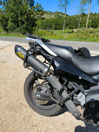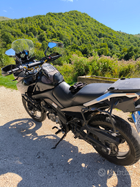 Suzuki V Strom 650 dl del 2005. La moto è in ottime condizioni meccaniche e attualmente in uso, quindi i km in foto potrebbero aumentare. Necessita solo del cambio gomme. Fari e frecce a led. Sono stati aggiunti i faretti con illuminazione complessiva notturna eccellente. La moto ha il paramotore e i telaietti per le borse laterali kappa/GIVI. In più ho aggiunto la presa USB con voltmetro, manubrio SRT e specchietti con grafica personalizzata molto stabili. Vendo per cambio moto, semplice sfizio.