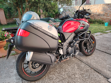ultima versione del modello DL 1000 V Strom, con assetto stradale, ruote tubeless in lega 2019. Controllo di Trazione su tre posizioni. Piattaforma inerziale su 3 assi, ABS cornering. Paramotore di serie. Cavalletto centrale. Fari a Led. Gommata con Scorpion Trial 2 in Novembre, poi mai usata per il freddo. Perfetta in tutto, comprese le due valige laterali.