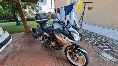 Vendo vstrom 650 completa di valige laterali , bauletto,borsa serbatoi, portapacchi con borsa supplementare. Trasmissione praticamente nuova pochissimi chilometri,.Appena tagliandata.