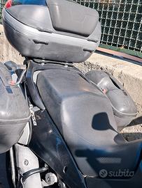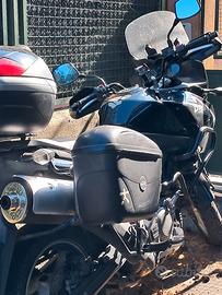 Ottimo stato generale, gomme Metz Seller con residuo 70 per cento, corona e catena nuove, sella in perfetto ordine. Qualche piccola riga da parcheggio sulle borse laterali, tagliandi e revisioni regolari.