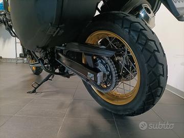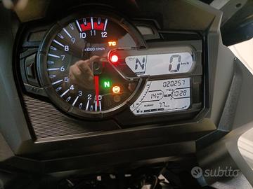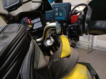 Accessori : Versione XT con coppia valigie laterali Suzuki, TopCase Givi Blade 37lt completo di schienalino, cavalletto centrale, barre paratelaio tubolari Suzuki , borsa serbatoio a sgancio rapido Suzuki, cupolino maggiorato AirFlow Suzuki, faretti aggiuntivi Givi, manopole riscaldabili, specchietti after market, barra porta navi-cel a cruscotto con porta navigatore e riser manubrio.