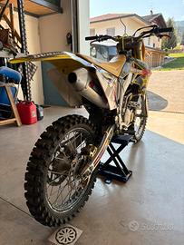 Vendo Suzuki Valenti RMZ 250 K9, moto usata davvero poco, solo utilizzo amatoriale, ore totali 90.8h, pistone e valvole rifatti alle 70h, funzionante in tutte le sue parti, appena revisionata, forcelle da gara, grafiche rockstar. In possesso anche il certificato di importazione, molto utile se si vuole immatricolarla per uso stradale. Oltre alla moto, ci sono altri componenti e accessori. Prezzo trattabile