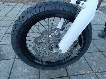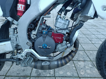 Vendo Suzuki Valenti SM 50 factory 2019 Monta la seguente elaborazione : oCilindro Italkit 80cc oAlbero motore Italkit corsa 44,9 oCartel lavorati raccordati e sabbiati da Z3Racing oFrizione rinforzata most oAccensione MVT dd con luci oPacco lamellare Malossi vl18 oBasetta alza pacco most 5mm oCollettore Doppler per vl18 oCarburatore sunworld oFilto lenticolare marchald oScarico KRM 80/90 oDoppio radiatore oPompa acqua maggiorata 2win oDissipatori in ergal x2 oRapporti 16 58 oGas rapido circuit Monta inoltre: oPompa freno anteriore rmz450 oPinza freno anteriore rmz 450 oGomme Pirelli sport demon NUOVE oComando frizione rmz 450 oPortatarga pieghevole dev&craft Essendo la versione factory la moto ha forcelle e mono ammortizzatore regolabili PREZZO TRATTABILE Insieme cedo anche molti pezzi originali comprese grafiche originali Per qualunque informazione sulla moto non esitate a contattarmi #valenti 50 #motard #cross #enduro #derbi #am6 #beta 50 #hm 50 #fantic 50 #aprilia 50