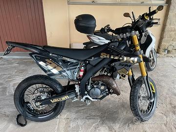La moto monta: gruppo termico stage6 77 big racing, albero stage6 rinforzato con i suoi cuscinetti, scarico completo drp calcolato per 86, carburatore dell'orto vhst 28, pacco lamellare malossi vl18, collettore top 360, filtro a cono stage6, frizione rinforzata a 6 dischi stage6, centralina malossi limitata a 15000 giri,