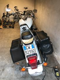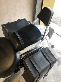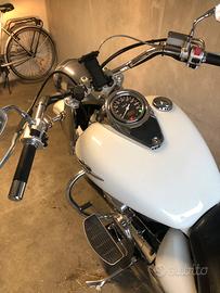 Splendida Custom tenuta in maniera maniacale con schienalino e bisacce in cuoio. Presa USB sul manubrio e portacellulare. Mantenitore di carica con connettore installato sulla batteria). Cromature PERFETTE. Revisionata fino al 2027.