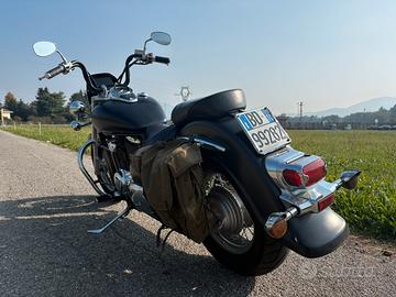 Vendo Suzuki VL800 Volusia, accessoriato, bollo pagato fino 06/2026, revisione valida fino a Maggio 2027, tagliando e batteria marzo 2025, gomme 80%, borse laterali, fari supplementari, para motore, manubrio ape anger 12". Ottime condizioni, prezzo trattabile.