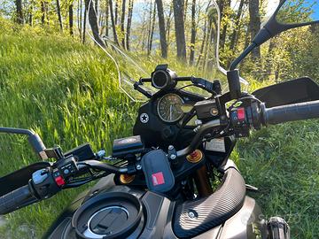 Vendo a malincuore per scarso utilizzo causa lavoro. Veicolo immatricolato a Maggio 2014 con soli 22000 km all'attivo (di fatto come nuovo per chi conosce la proverbiale e indiscussa affidabilità' di questo mezzo). La moto sembra uscita nuova dal concessionario, mai cadute, nessun graffio, sempre tenuta in garage in locale chiuso e riscaldato. Tenuta e utilizzata in modo maniacale come si può vedere dalle foto. Molti accessori tra cui: 1) Scarico SC Project 2) Barre protezione motore 3) Freccie a LED 4) Bauletto GIVI ( ci stanno 2 caschi) 5) Leve manubrio regolabili ricavate dal pieno 6) Predisposizione Givi Borsa serbatoio 7) Cavalletto Centrale 8) Piastra cavalletto laterale (anti affondamento) 9) Lampadine fari a LED ( luce bianca) 10) Specchietti Aprilia Tuono 11) Barra porta navigatore 12) Manopole Riscaldate 13) Paramani 14) Sella ribassata ( oltre all'originale) 15) Parabrezza maggiorato 16) Borse laterali originali ( non montate nella foto) 17) Faretti supplementari a Led Givi ( ancorati a barre para motore) Non vendo gli accessori separatamente. Il prezzo non è trattabile, la moto è praticamente nuova come si può vedere dalle foto.