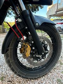 Suzuki V-Strom 650 XT2015 Ultima revisione aprile 2025 Ultimo tagliando aprile 2026 Pneumatici nuovi appena sostituiti aprile 2026 (Michelin Anakee road). 52.000km circa (attualmente in uso). Sempre tagliandata con olio di qualità e alle scadenze previste. Eliminati i "difetti" del modello con: Sospensioni rifatte e modificate da Giotek (cercate chi è se non lo conoscete). Sembra un'altra moto adesso. Impianto frenante anteriore modificato come da foto, con pinze freno Nissin (cbr600rr) tubi in treccia e pastiglie ZCOO. Ora frena davvero. Trasmissione in ottimo stato. Cupolino givi più alto, scarico completo GPR, fari anteriori completamente a Led (OSRAM originali), manopole riscaldabili regolabili in 5 posizioni OXFORD, attacco accendisigari, piastra bauletto monokey, e telai laterali Givi porta bauletti, barre para motore. Cavaletto centrale, paracoppa originale. Presenti tutti i pezzi originali (cupolino, scarico completo, impianto frenante). Valige laterali + bauletto + borsa serbatoio givi estendibile. Prezzo contando tutte le migliorie. 4.400 € + 300 bauletto, valige, borsa serbatoio. Qualsiasi prova o visione. NON SVENDO