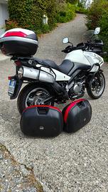Causa scarso utilizzo vendo Suzuki Vstrom DL 650 Traveller del 2011, con 30.000 Km. Dotazioni: ABS, valigie laterali e bauletto posteriore originali, barre paramotore, paramani, batteria seminuova, gomme Continental Road Attack 3 all'80%. Moto affidabile e dai bassi consumi, manutenuta regolarmente, poco sfruttata, pronta per piccoli e grandi viaggi in tutta comodità. Visibile in zona Lecco.