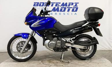 Motore: monocilindrico da circa 644 cc, raffreddato ad aria/olio, 4 valvole per cilindro, distribuzione SOHC, alimentazione a carburatore (2 × Mikuni Ø 32 mm). Potenza: circa 48 CV ([?] 35 kW) a ~7.000 giri/min. Coppia: circa 52 Nm a ~5.500 giri/min. Trasmissione: cambio meccanico a 5 marce, trasmissione finale a catena. Telaio e ciclistica: telaio a doppia culla in acciaio; forcella anteriore telescopica, escursione circa 170 mm; sospensione posteriore monoammortizzatore con leveraggio "Full Floater", escursione circa 167 mm; ruota anteriore da 19'' con pneumatico 100/90-19, ruota posteriore da 17'' con pneumatico 130/80-17; freno anteriore a disco Ø 300 mm, freno posteriore a disco Ø 240 mm. Altezza sella: circa 830 mm. Peso a secco: circa 162 kg (peso in ordine di marcia leggermente superiore). Serbatoio: capacità circa 18,5 litri. Stile: moto in stile "adventure/dual-purpose" leggera, con ruote di taglia mista (19'' davanti) che la rende adatta anche a tratti sterrati leggeri; carenatura minima ma parabrezza protettivo; posizione di guida eretta. Carattere: pensata per chi cerca una moto versatile, semplice e robusta, adatta sia a percorsi urbani che a escursioni leggeri su strade meno battute; motore monocilindrico tranquillo e facile da gestire, ciclistica sufficientemente stabile; meno indicata per prestazioni elevate o guida su tracciati fuoristrada impegnativi.