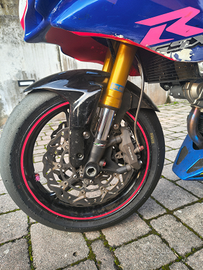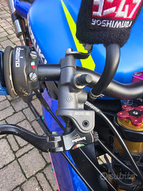 Monta forcella anteriore gsxr 600 2005, forcellone gsr 600, mono ohlins, pompa radiale Brembo 19 Rcs, impianto elettrico ridotto con pulsantiera a manubrio, tappo benzina sgancio rapido, pedane ergal arretrate, filtro aria lavabile, ammortizzatore di sterzo, telaietto posteriore gsxr con coda r6,scarico completo.
