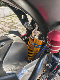 Monta forcella anteriore gsxr 600 2005, forcellone gsr 600, mono ohlins, pompa radiale Brembo 19 Rcs, impianto elettrico ridotto con pulsantiera a manubrio, tappo benzina sgancio rapido, pedane ergal arretrate, filtro aria lavabile, ammortizzatore di sterzo, telaietto posteriore gsxr con coda r6,scarico completo.