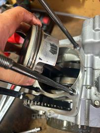 motore completo con pistone , biella , il cilindro é stato riportato a classificazione A quindi possibilita di retificarlo in un futuro senza doverlo sostituire , sono stati cambiati paraoli e cuscinetti rinforzati ad alta prestazione , sostituito motorino di avviamento , volano con rispettovo cuscinetto interno e batteria (batteria sostituita fine 2024 ) , distribuzione , gioco valvole , forcelle revisionate e tarate motard sostituito manubrio in ergal nero , portatarga pieghevole , micro frecce , pedane nere , gomma posteriore nuova e gomma anteriore al 70%.