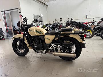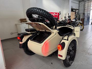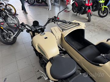 Disponibile in pronta consegna a 10.990 euro + spese di immatricolazione e trasporto Moderno in stile vintage con motore bicilindrico da 500cc, Euro 5+, che eroga una potenza di 54 CV (39,6kW). Cambio a 5 marce più retromarcia, ideale per il turismo ma anche estremamente fruibile nel contesto urbano. Sicurezza e Freni: Sistema ABS di serie su freni a disco (anteriore [?]280mm, posteriore [?]260mm, carrozzino [?]220mm). Design e Struttura: Telaio in tubi a doppia culla, cerchi a raggi con pneumatici tassellati, sella a 800mm. Peso e Dimensioni: Peso in ordine di marcia di circa 385 kg. Patente A2.