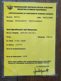 Ottime condizioni, non necessita di nessun lavoro, documenti in regola, revisione scade 11/2027, iscritta FMI, targa oro FMI e Registro Storico SWM. Compresi nel prezzo plastiche mascherina faro e fianchetti in versione bianca.