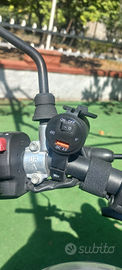 Una scrambler bellissima la swm 500 granmilano dotata di borsa laterale con staffa montata e di paravento per viaggiare in comoditá