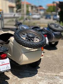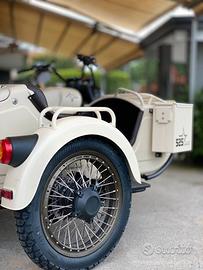 Nuovissimo e bellissimo Sidecar SWM Urban 525 con motore bicilindrico 4 tempi per una mobilità alternativa ed emozionale. Ideale per passeggiate in famiglia fino a 3 persone. Ideale anche per il trasporto disabili o per eventi matrimoniali. Il veicolo a tre ruote omologato per la circolazione su strada, 2 posti a sedere sul motociclo e un posto sul carrozzino laterale dotato di freno. Motore bicilindrico 4 tempi, raffreddamento a liquido, 493,7cc. CAMBIO: 5 marce + retromarcia, Catena FRENI: anteriore a disco Ø 276 mm idraulico, posteriore a disco Ø 260 mm idraulico RUOTE: Cerchi a raggi, Pneumatici da "18 + ruota di scorta SOSPENSIONI: a molla + ammortizzazione idraulica con precarico regolabile MISURE: 2300 × 1680 × 1180 mm PESO: 348kg. OMOLOGATO: 3 posti a sedere COLORI: verde militare, nero, sabbia, rosso Prezzo €.10.990,00 escluse spese immatricolazione e m/strada €. 600,00
