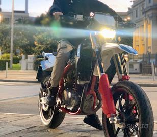 Vendesi per passaggio a cilindrata superiore, moto modello SWM sm125r factory 2019. Sono state sostituiti tutti gli ingranaggi del cambio ,valvole ,tendicinghia e la cinghia, Sono state montate plastiche after market come la piatta e parafango anteriore e il faro led. Sono comprese sia le plastiche originali e sia after market , la batteria a litio, e il porta targa originale é un po' lesionato, causa vibrazioni. Gomma di dietro nuova, quella anteriore 70%.Per qualsiasi altra informazione non esitate a contattarmi.
