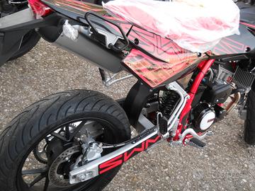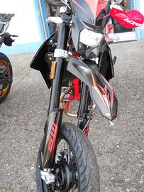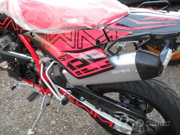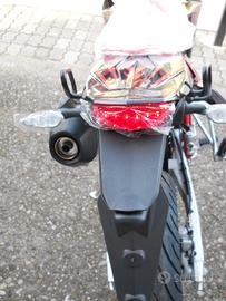 Motard da 125 cc. kw 11, cv 15 con motore bialbero raffreddato a liquido, 5 marce. Forcella anteriore da 41.
