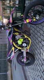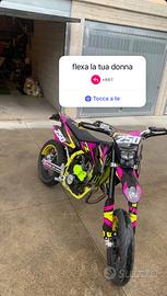 swm 125 4t, unico proprietario, 16.000 km, sempre tagliandata, e revisionata, ottima per chi vuole iniziare a prendere mano con le moto, monta pareccchi gadget, come porta targa, scarico artigianale, paramani, pezzi in ergal, grafiche e altre modifiche sparse.