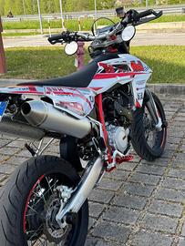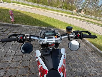 Come da foto vendo swm 500 in ottime condizioni. Non consiglio a chi ha appena iniziato, attualmente monta specchi manubrio omologati, V face led, pedane ergal rosso, gomme 80%, tamponi ruote, grafiche personalizzate, paramani neri in alluminio, centralina scarico full power, candela racing, filtro aria e mappa 62cv. Ho anche il kit per portarla A2 35kw valuto la vendita, omologata per 2. Vendo causa di passaggio cilindrata A3, prezzo variabile in caso si volessero i pezzi originali e centralina depo, disponibile per domande no perditempo non vedo pezzi singolarmente.
