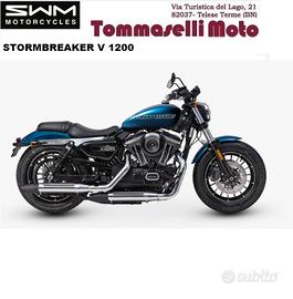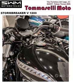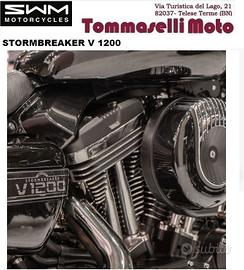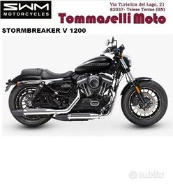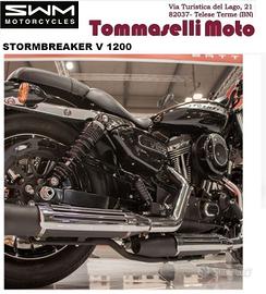 Tommaselli Moto concessionaria moto e scooter ,Telese Terme,BN propone in vendita : disponibile in pronta consegna SWM STORMBREAKER PREZZO EURO 9990 (escluso costi di immatricolazione e messa su strada)È spinta da un bicilindrico a V longitudinale a quattro tempi con la distribuzione ad aste e bilancieri, raffreddato ad aria, e le custodie delle aste che percorrono esternamente cilindri e teste. Se vi sembra un motore conosciuto non vi sbagliate, si tratta in effetti del bicilindrico Harley-Davidson che veniva montato sulle vecchie Sportster. finanziamento in sede  OMAGGIO: CASCO GIACCA (ESTIVA O 4 STAGIONI) MOTORE: V-twin, 4 tempi; 1200cc; 5 Marce; Euro 5 PNEUMATICI: Anteriore 130/90 x 16"; Posteriore 150/80 x 16" FORCELLA: Steli Ø 49mm _ Doppio ammortizzatore idraulico regolabile Garanzia ufficiale della casa madre. Possibilità di finanziamento in sede con mini rate e senza anticipo ,scegli la formula più adatta alle tue esigenze . Ritiriamo il tuo usato, di qualsiasi marchio. Per ulteriori informazioni ed appuntamenti contattare ufficio vendita: Vi aspettiamo in sede in via Turistica del Lago, Telese Terme, BN chiedi un preventivo personalizzato.