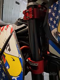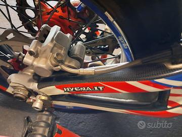 Aprilia sxv 550 motore rifatto con 0 ore pompanti forcella ufficiale sachs, mono posteriore ohlins,piastre in ergal offset regolabile,cerchi alpina,corona e catena 520,batteria nuova,pinza dal pieno brembo, pompa brembo 16×18,disco freno margherita 320 braking,scarico silmotor ,frizione antisaltellamento stm,coperchio Adige ergal ,tubi siliconici grafiche hyena, TUTTE le parti originali plastiche cerchi e scarico anche mono originale.Moto usata in pista a livello AMATORIALE, SOLO PER DIVERTIMENTO PERSONALE,MAI GARE !!!