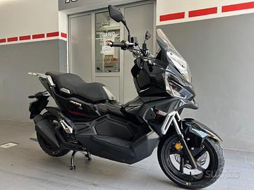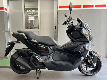 Ispirato all'avventura, ADX è lo scooter dalla personalità completa. Autentico Crossover! Il suo design, dettato da uno stile unico che si sposa perfettamente alla sua potenza, è in grado di combinare versatilità e sofisticata bellezza. Il mono ammortizzatore posteriore, gli pneumatici dedicati e la rivista posizione di guida, consentono ad ADX di destreggiarsi sullo sterrato con la stessa facilità che sull'asfalto. ADX è più di un comune scooter, è un Crossover. Motore raffreddato a liquido, ABS, TCS, telaio A.L.E.H. Quadro strumenti completo in TFT. Start e Stop. Mono posteriore, ampio sottosella. Serbatoio da più di 15 litri!