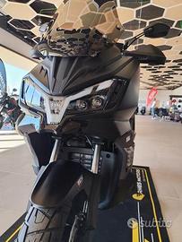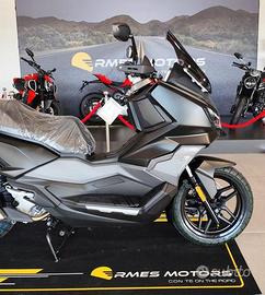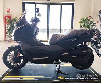 SYM ADX 300: Un mix perfetto tra strada e fuoristradaL'ADX 300 è uno scooter davvero particolare, perché unisce le comodità di un classico scooter alle caratteristiche di una moto da fuoristrada, risultando perfetto per chi ama avventurarsi su strade diverse.Caratteristiche principali:Motore: Ha un motore potente e moderno, che ti permette di muoverti agilmente sia in città che fuori. È un monocilindrico a quattro tempi, raffreddato a liquido, che garantisce ottime prestazioni e consumi contenuti.Design: Il design è grintoso e avventuroso, con un manubrio alto che ti offre una posizione di guida comoda e dominante. Le ruote sono grandi e tassellate, perfette per affrontare anche terreni sconnessi.Tecnologia: L'ADX 300 è dotato di una strumentazione digitale completa e di un sistema di illuminazione a LED moderno ed efficiente.Comfort: La sella è comoda per pilota e passeggero, e il sottosella offre spazio sufficiente per un casco integrale.Versatilità: Grazie alle sue caratteristiche, l'ADX 300 è perfetto per un utilizzo quotidiano, ma è anche in grado di affrontare percorsi più impegnativi.