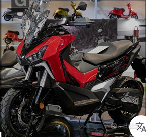 ADXTG 400 : Libera l'avventuriero che è in teVivi un'avventura senza compromessi con il nuovo SYM ADXTG 400. Questo maxiscooter combina potenza, maneggevolezza, design audace e innovazioni tecnologiche per trasformare ogni viaggio in un'esperienza indimenticabile.Perfetto per dominare le strade urbane e avventurarsi su ogni tipo di percorso. Con il suo motore rivoluzionario e uno stile ispirato alla natura, incarna versatilità ed eleganza al servizio dell'avventura.Tecnologia off-road: BOSCH ABS / modalità off-roadMotore Hyper-VVS ad alte prestazioniParabrezza regolabile e pedane allungateEuro 5 Sistema Smart KeyMotore e trasmissioneHyper-VVS con valvola variabile, monocilindrico 4T da 399 cc, raffreddamento a liquido, potenza di 25,7 kW a 7000 giri/min.Sospensione e maneggevolezzaSospensione multilink SANYANG e forcellone indipendente in alluminio per assorbire le irregolarità e garantire stabilità anche su terreni difficili.Tecnologia avanzataModalità off-road BOSCH ABS per una sicurezza ottimale in ogni condizione.Comfort premiumPedane allungate, manubrio largo in alluminio e parabrezza regolabile senza attrezzi per una posizione confortevole, anche su lunghi tragitti.ADXTG 400 SpecificheTelaioSospensione anterioreForcella idraulicaSonspensione posterioreDämpferFreno anterioreDisco - ABSFreno posterioreDisco - ABSPneumatici posteriori120/70 - 15Pneumatici posteriori150/70 - 14L/ l / H (mm)2166/920/1460Altezza della sella (MM)790Massa a vuoto (kg)213Capacità del serbatoio (L)13MotoreMonocilindrico - 4 T - IniezioneCilindrata399 ccRaffreddamentoLiquidoCambioVariomaticoAvviamentoElettricoPotenza25.7 kW a 7000 giri/minPOSSIBILITÀ DI FINANZIAMENTO TOTALMENTE SENZA ACCONTO CON RATA A PARTIRE DA 110 EURO AL MESE. POSSIBILITÀ DI AVERE LA POLIZZA RC AL PREZZO PIU BASSA DEL MERCATO. POSSIBILITÀ DI SPEDIZIONE IN TUTTA ITALIA CON PICCOLO CONTRIBUTO