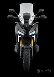 Il nuovo ADX 400 GT si pone al vertice della famiglia crossover SYM, che già comprende le versioni 125 e 300. È completamente nuovo a cominciare dal motore, montato in mezzo alla pedana per ripartire al meglio i pesi. Si tratta di un raffinato monocilindrico raffreddato a liquido da 35 CV e 37 Nm di coppia massima, dotato di variatore di fase, per avere un'erogazione piena e costante a tutti i regimi, doppio contralbero per smorzare le vibrazioni e doppia pompa dell'olio per garantire una corretta lubrificazione anche nelle situazioni più impegnative. La dotazione di elettronica comprende poi l'ABS che si può escludere al posteriore per l'uso in off road, il controllo di trazione a sua volta disinseribile e l'accensione con telecomando keyless.Ciclistica da moto:Di qualità la ciclistica. Il telaio è a traliccio in acciaio con supporti motore in alluminio, le sospensioni vedono al lavoro una forcella a steli rovesciati da 41 mm e un monoammortizzatore regolabile nel precarico collegato al forcellone in alluminio tramite leveraggi progressivi che permettono di avere una risposta differente a seconda delle sollecitazioni. L'impianto frenante invece può contare su un disco anteriore da 275 mm con pinza ad attacco radiale a 4 pistoncini e uno posteriore da 233 mm con pinza a doppio pistoncino. Le ruote in lega infine sono da 15 pollici all'anteriore e da 14 al posteriore.SYM ADX 400 GT ABS TCSDisponibile grigio pastello al prezzo PROMO DICEMBRE Euro 6690,00 f.c.4 Anni di Garanzia Ufficiale SYM4 Anni di Assistenza StradaleFinanziamenti personalizzatiPossibilità di Assicurazione RCA e Furto ed Incendio, da preventivare in sede secondo le proprie esigenze.