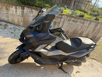 Scooter Sym modello CRUISYM 300cc in perfette condizioni meccaniche. Regolarmente tagliandato ogni 3000 km. Ha solo dei graffi laterali e il parafango anteriore spaccato come si vede in foto. Dotato di antifurto blocca ruota. Regalo anche due caschi.