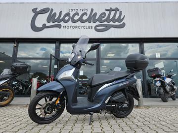 Accessoriato con parabrezza e baule posteriore.