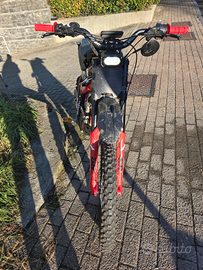 Moto con centralina KO pro, cerchio posteriore da 16, forcelle marzocchi, extender e pedivelle maggiorate.