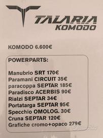 Talaria Komodo è la più alta espressione del enduro leggero, agile potente e molto curata sotto ogni aspetto. Completamente personalizzabile nelle grafiche e nel numero di gara, qui presentata in questa bellissima livrea ispirata F1 d'epoca 32kw di potenza 120km di autonomia 120km/h di velocità 95kg di peso La moto è esattamente disponibile, come si vede in foto, il prezzo degli accessori è esposto, si può decidere di mantenerli tutti o eliminarne alcuni. Prezzo con sconto applicato: 6.400 Prezzo di listino: 8.490 Consulenza reale su autonomia, utilizzo e manutenzione Solo veicoli selezionati e controllati Nessun costo nascosto - massima trasparenza Pagamenti flessibili: Bonifico, Finanziamento personalizzato o Contanti Agevolazioni dedicate ad aziende e Partite IVA Permuta anche con veicoli termici Consegna e ritiro a domicilio in tutta Italia Gestione pratiche ecobonus ed ecoincentivi Fornitore ufficiale dei migliori brand: Talaria - Volar - Surron - Ultraviolette Vmoto - CJR e-Fun - Next - Alzaitalia Siamo specializzati in mobilità elettrica. Questo significa competenza vera, assistenza concreta e supporto anche dopo la consegna. Dai modelli premium ad alte prestazioni fino alle soluzioni più accessibili, selezioniamo solo veicoli con il miglior equilibrio tra qualità, affidabilità e prezzo. Contatto diretto WhatsApp: Risposta rapida, foto e video su richiesta, preventivi personalizzati Moto elettriche italia.