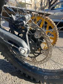 Elenco upgrade montati recentemente: forcella tech 230mm, batteria 60v 70a, freni shimano con dischi flottante maggiorati, corona, manubrio con rise rialzato, gomme enduro nuove, pedaline, codone.