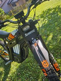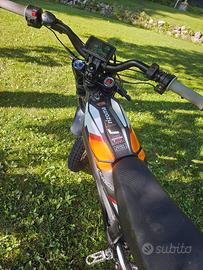 Ha 2 modalità di guida, eco e sport. Percorrenze e velocità: in eco fa più o meno 45km orari e si riescono a fare una sessantina di km, in sport fa 70 km orari con un'autonomia che varia a seconda del tipo di percorso e dal tipo di erogazione. A corredo aggiungo casco airoh e stivali cross taglia 43.