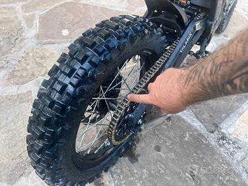 Talaria TL 5500 PRO 13,4 kw ,in condizioni perfette. Percorso 1700km. + ruota da 16 come sul foto Manubrio rialzato Batteria da 72V - 40Ah (2.880 WH) Forcella Enduro 200mm di escursione Ammortizzatore Enduro 85mm di escursione Dischi Ant. e Post. 220mm*3mm