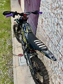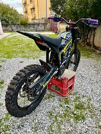 Vendo Talaria TL4000 L1e con circa 500km, la moto monta cerchi milk racing 19"-16" con raggi rinforzati, leveraggio maggiorato, corona 48 denti, disco anteriore 250mm, manubrio milk racing rialzato più attacco manubrio volar sport, pedane volar sport, parafango ktm+tabella portanumero, faro MX e schermo piccolo, sistema per richiudere targa + faro e mini frecce posteriori a scomparsa, sella crm design