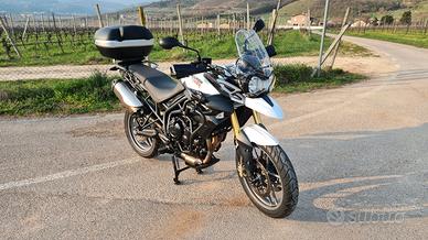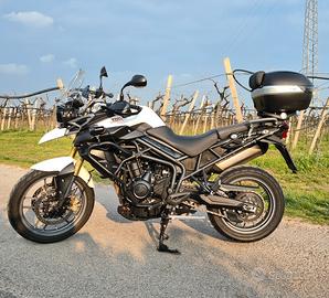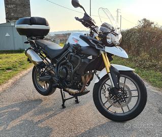 Vendo Tiger Triumph 800 ABS del 2012 in ottime condizioni, quasi maniacali. Ha sempre ''dormito'' in garage, protetta e trattata con prodotti specifici. Circa 45.000 km Qui sotto elenco l'allestimento: Riser manubrio Paramani con rinforzi alluminio Impianto fari full LED Fari supplementari LED Paramotore GIVI Cavalletto centrale Bauletto GIVI V46 Tagliando appena fatto (non necessita di ulteriori manutenzioni se non per vostro scrupolo) Bollo pagato fino a gennaio 2027 Gomme Pirelli Scorpion al 90% Compreso nel prezzo anche borsa serbatoio Kappa con fissaggio magnetico a serbatoio. Blocca disco e accessori vari. Disponibile per maggiori informazioni e foto dettagliate. Vendo per inutilizzo dato che la famiglia si è allargata :) Scrivete se interessati No perditempo per cortesia.